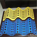 此產(chǎn)品采用金屬原材料經(jīng)機(jī)械組合模具沖孔、壓制、噴塑而成,具有強(qiáng)度高、韌性好、抗彎曲、抗老化、抗阻燃、耐高低溫、耐酸堿、承受彎曲變形能力強(qiáng)等優(yōu)良性能;經(jīng)過特殊配方和工藝制作,可根據(jù)用戶需要制成各種厚度、顏色,具有使用壽命長、色彩鮮艷不易褪色等特點(diǎn);綜合抑塵效果良好,優(yōu)于國內(nèi)外同類產(chǎn)品。防風(fēng)抑塵網(wǎng)不僅外形美觀,維護(hù)成本低并且具備防火,防盜等優(yōu)點(diǎn);完全避免了以往表面覆蓋、噴淋技術(shù)、全封閉幾種措施反復(fù)投資、耗資巨大、受場地和作業(yè)要求限制、抑塵效果不佳的問。此項(xiàng)技術(shù)造價(jià)低、設(shè)置靈活、安裝簡單。一次投資,長期受益。擋風(fēng)抑塵墻設(shè)置后不僅使污染嚴(yán)重的地區(qū)環(huán)境得到有交的改良,而且實(shí)施擋風(fēng)抑塵墻的煤場每年還節(jié)省煤數(shù)千噸,在取得良好社會效益的同時(shí)又獲得了較大的經(jīng)濟(jì)效益,美觀整齊的擋風(fēng)抑塵墻也成為這些地區(qū)一道怡人的風(fēng)景線!